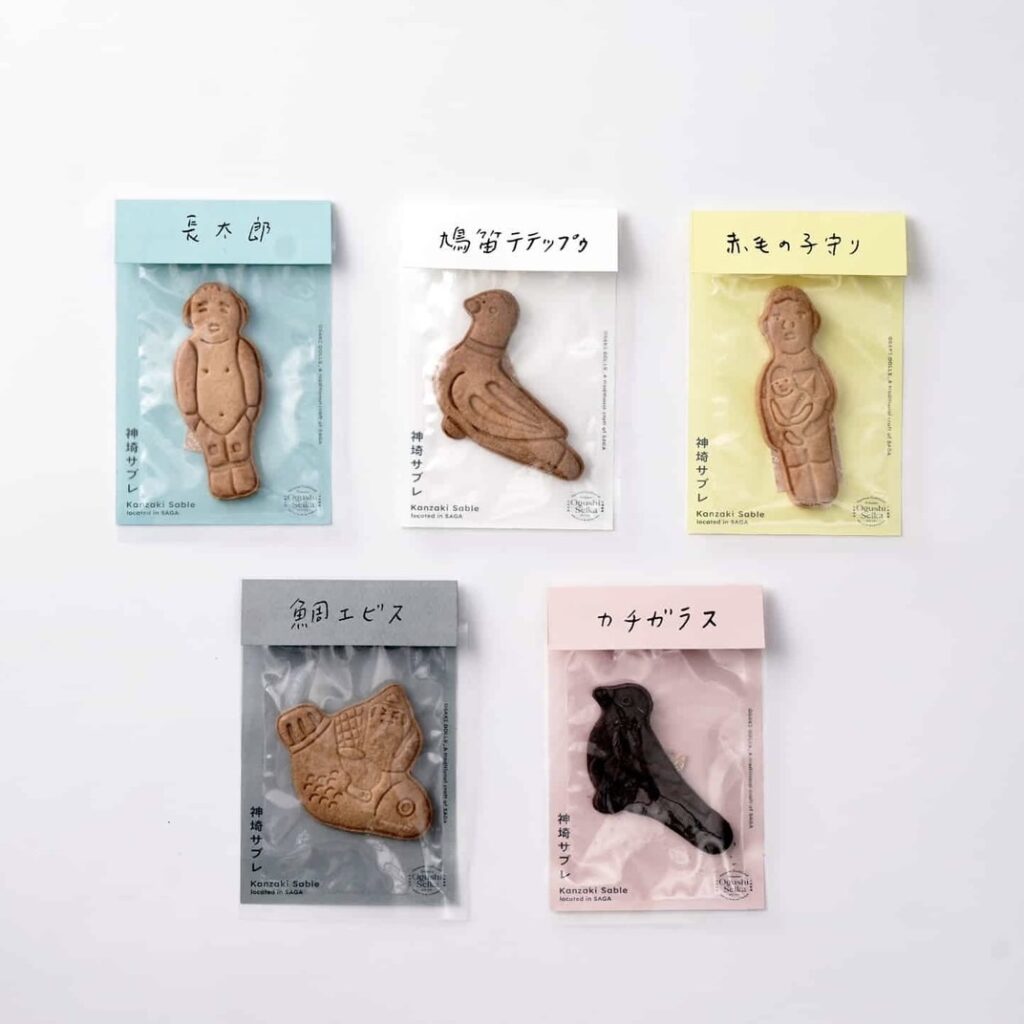 佐賀県神埼市に伝わる郷土玩具・尾崎人形の「長太郎」「鳩笛テテ ップウ」などの脱力系お縁起サブレ。